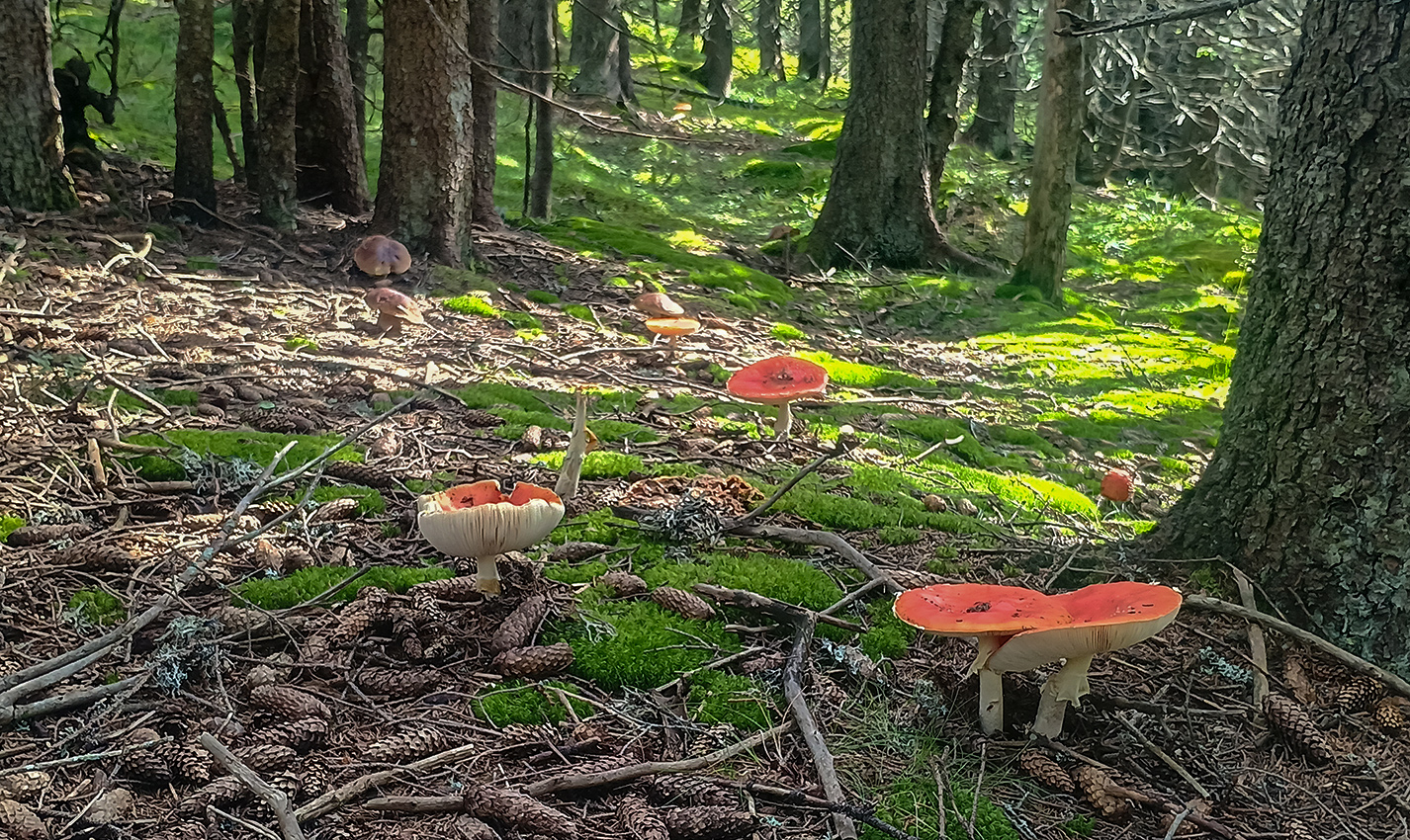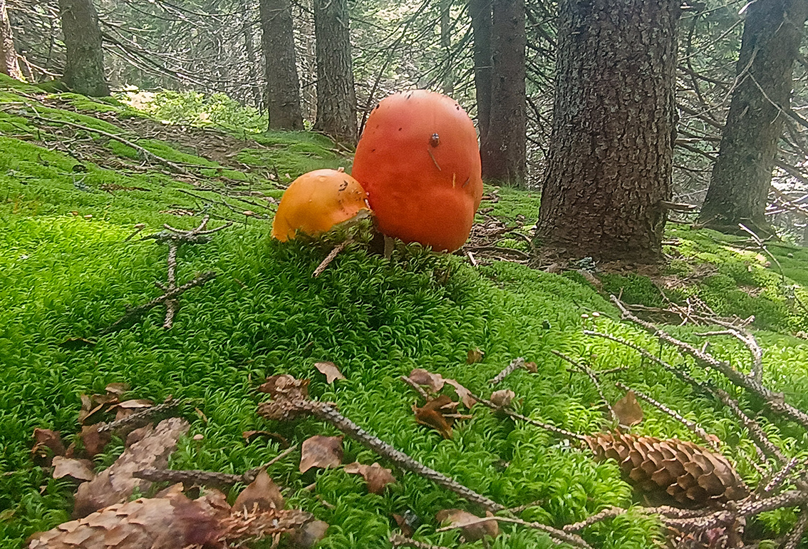 A térképek ezt öt órás útnak mondjak, nekünk 8 óra kellett. Igaz, nehéz hegyre, gombamániással, gombával teli erdőben haladni :), na nem is beszélve a nehéz zsákokról.