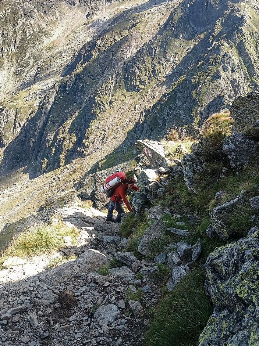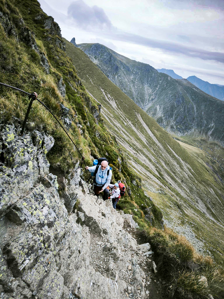 Itt olvasgattam hogy melyik útvonal nehezebb a Királykőn a láncoknál felmenni, vagy a Fogarasban ez a Custutura Saratii? Több év tapasztalat és a Láncoknál legalább 10 felmenéssel határozottan ez a nehezebb, a másik hosszabb és fárasztóbb. Itt az adrenalin miatt nem érzed a fáradtságot. Sanyi szerint ezt nem kéne tapasztalatlan turisták számára jelölt útnak venni, igaz, ki lehet kerülni, aki nem bírja, ha nem későn veszi észre, hogy benne van a málnásban.