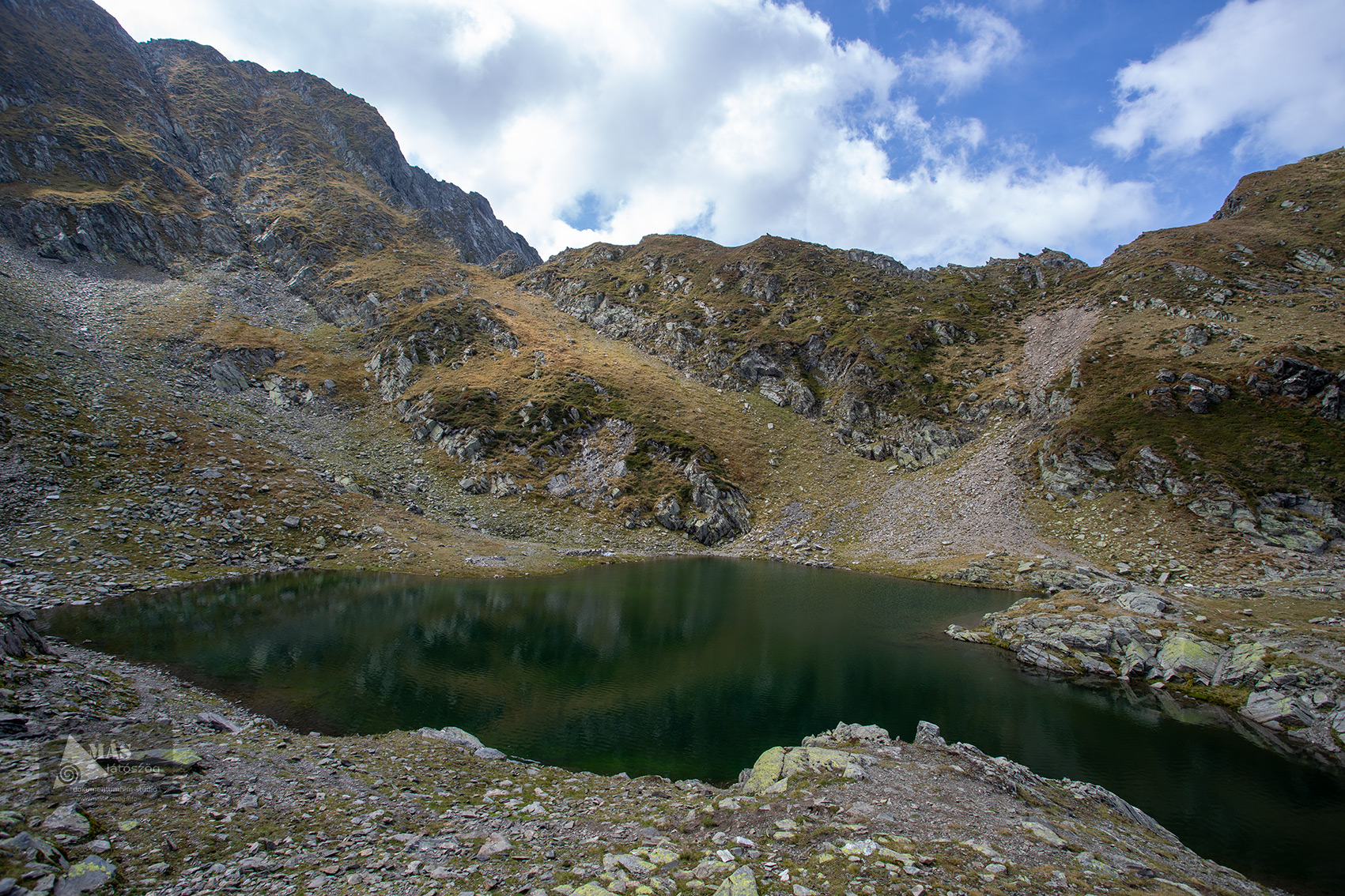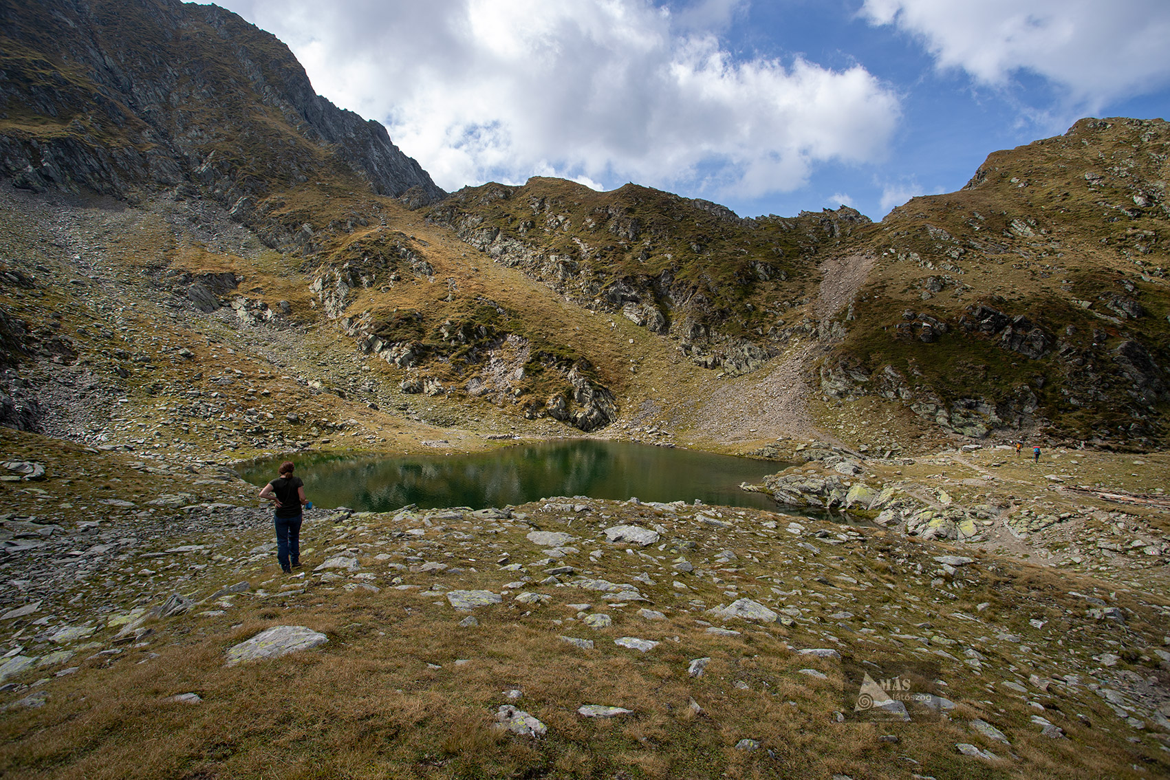 Így fél kilenckor sikerült is elindulni, a Zerge tó fele. Azt mondtuk, hogy elmegyünk első nap a Vist menedék kunyhóig. A Fogarasi-havas, mindig tartogat meglepetéseket, kilométerbe hiába nem tűnik soknak, de a kb. 1300 szint fel és kb. ugyanannyi le is, az nagy zsákkal azért nem semmi. Közben találkoztunk két sráccal, egy baróti meg egy szentgyörgyi, huszonéves legényekkel, akikkel szinte párhuzamosan haladtunk, hol ők kerültek el, hol mi őket. Úgy délután 3 óra körül világossá vált számomra, hogy a Vist menedéket csak a Vist csúcs meghódítása után tudjuk elérni, ami nem biztos, hogy jó ötlet, hogy kifárasszuk magunkat hiszen úgy is 3 napot szántunk rá. Így hát mikor elértük a Podul Giurgiului nevű tavat, kiszálltunk és letáboroztunk. A két fiatal legény tovább ment.